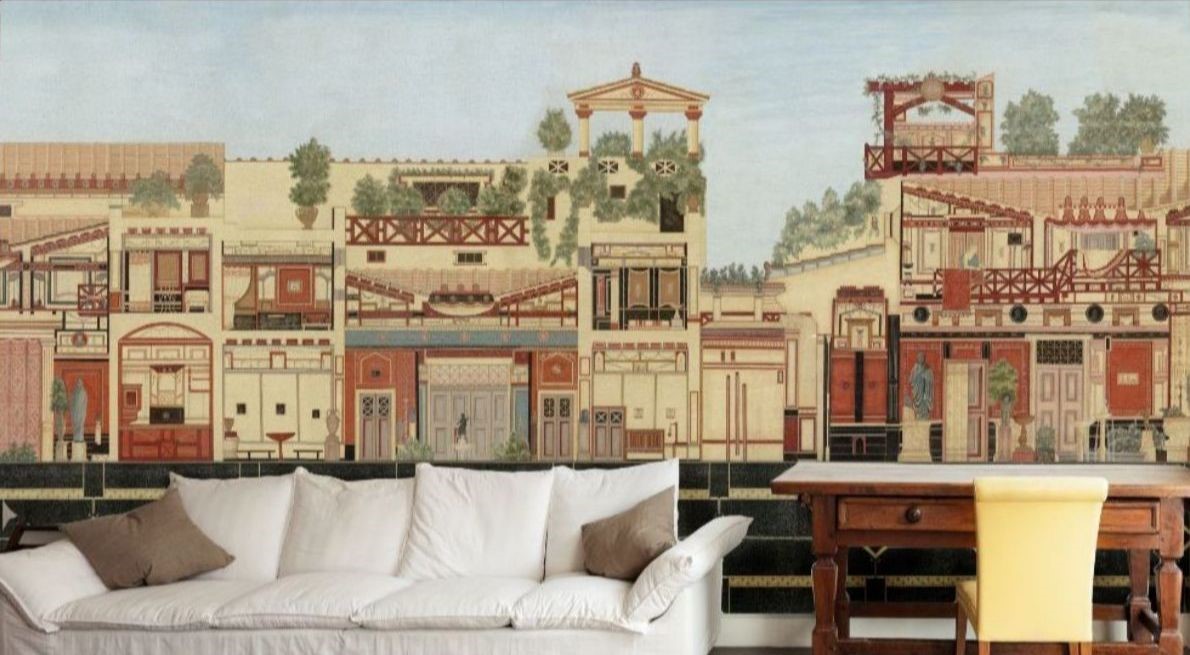SC 148 This decor was developed in the Pompeian style from cross-sections of famous villas of Pompeii which...