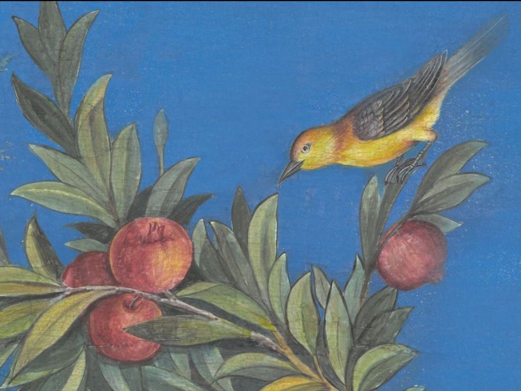A section of the orginal fresco, painted between 30 and 20 BC, for the Villa of Livia Drusilla, wife of the Roman Emperor Augustus.