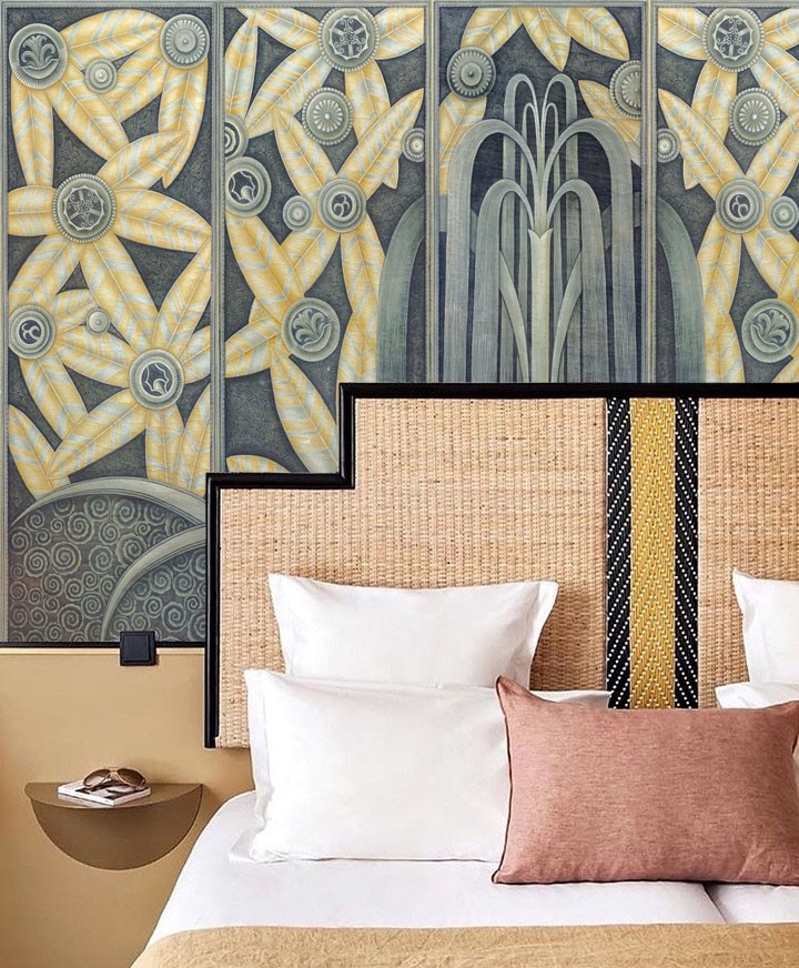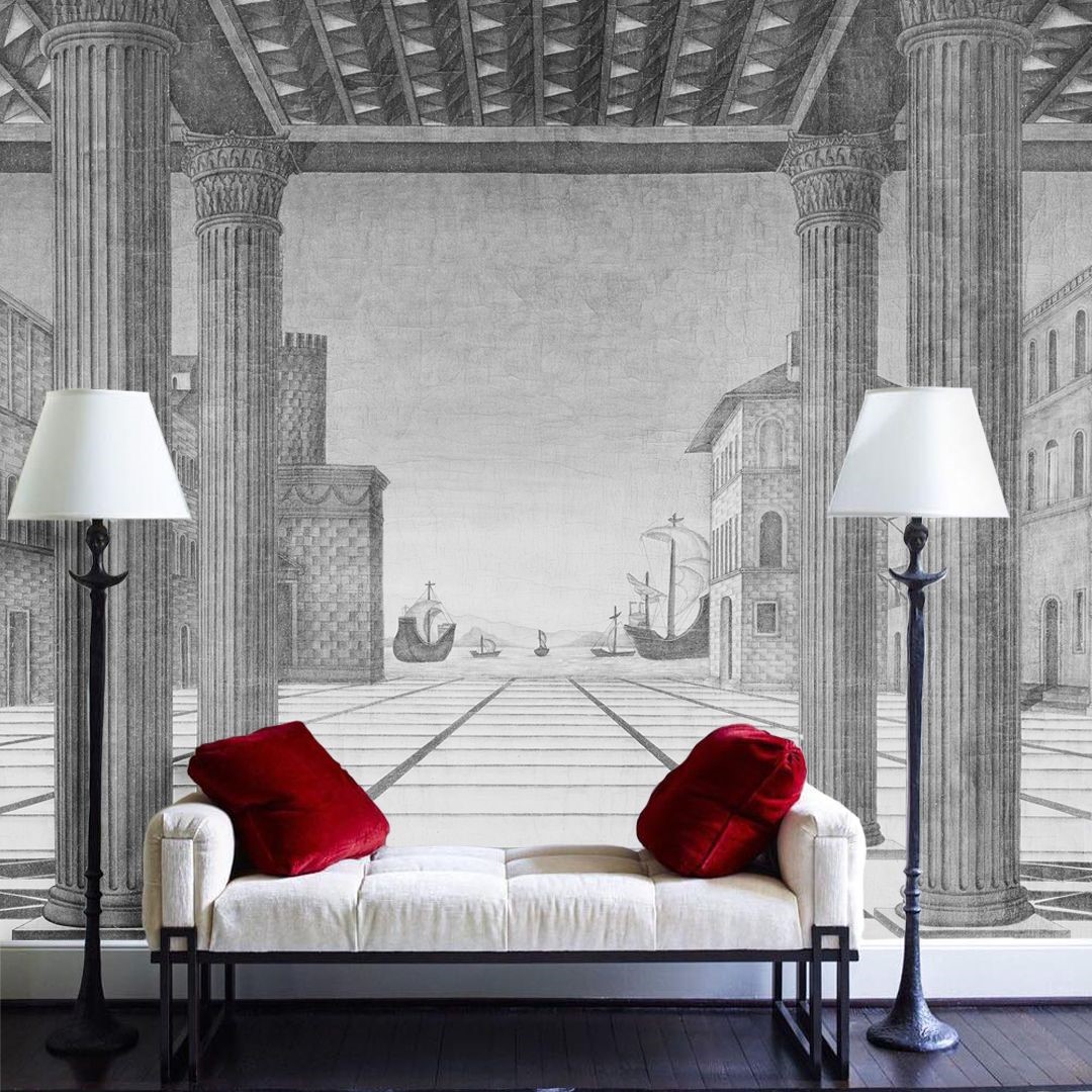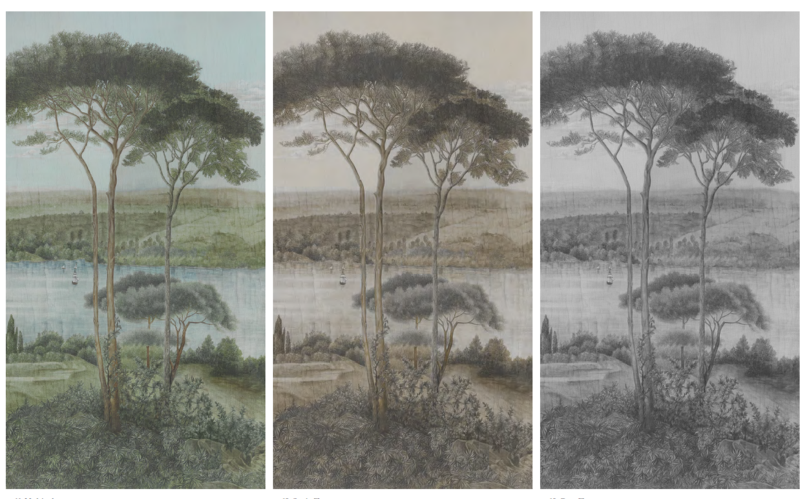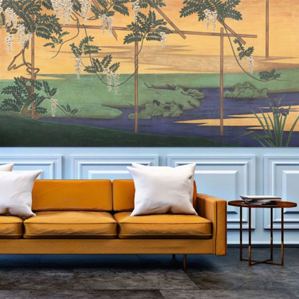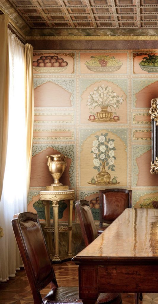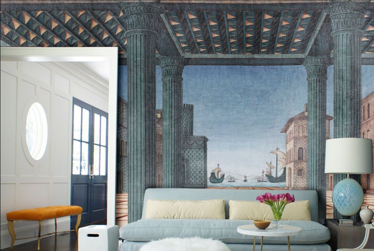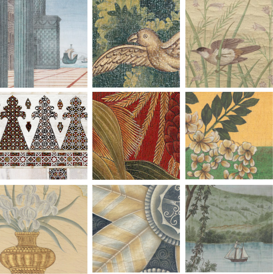| As 2020 has finally come round to drawing the curtain, we would like to distract you with a trip through different periods and cultures, mostly casting your gaze over the great outdoors which we so miss. 2021 may take us back to the fresh air. Take a peek : It starts in the great meeting point of East and West: Istanbul. Inspired by a series of lithographs by Schranz, dated 1856, the Bosphorus, emptied of its buildings and bridges is painted according to a perfectly drawn vista of the existing topography. If the Mosques appear on the skyline to evoke the mythical city, the skyscrapers and even older buildings have been conveniently replaced by nature. A multitude of aimless ornamental vessels animate this idealised vista. (Romantic Bosphorus) Also from Istanbul is Ahmet III’s early 18th Cent. Fruit Room from Topkapi, re-visited by Iksel in pastels. Whether you feature it behind a bed, on a wall or in a full room, it brings a timeless serenity. (Ottoman screen) The fine stone marquetry from the Norman Palace in Palermo associated with weathered marble make a sumptuous stripe to be used as a background in almost any context. Traditional and modern. (Palermo Stripes) Wisteria in Landscape and Japanese Cornflowers Red are both Edo period (17th Cent) and surprisingly modern. Art Deco Fountain is painted after a splendid 1920’s metalwork folding screen by Edgar Brandt. >From faux metal we go to faux wood trellis from Louis XIV’s France. We painted a series of Exotic trees and birds into these delicate wooden structures similar to the ones in Versailles. (Trellis Exotica) We now move on to Flanders and Tapestry. A very convincing faux version which hangs in several chateaux. (Birds Tapestry) Next is a very famous Renaissance architecture by Brunelleschi all in faux stone. One of the models of modern Perspective by one of its inventors packs a big punch on a wide wall. (Brunelleschi Perspective) You will find 43 full decors in our collection of Standard Decors. They come in 5 Heights and many colour options. Mehmet & Dimonah Iksel |