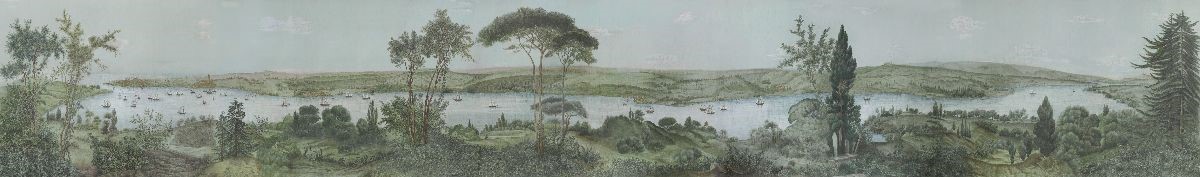 We decided to make a full “verdure” out of it, omitting characters and simplified buildings.The result is a much greener and sparser Bosphorus than that of the time. However, the stunning nature and topography are very much present. Today, skyscrapers add to the contrast between past and present. Also, Istanbul has grown more than twentyfold.