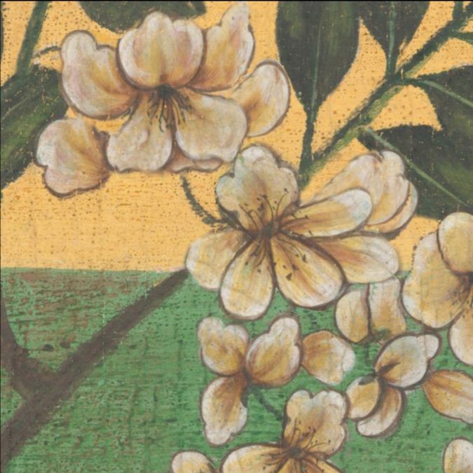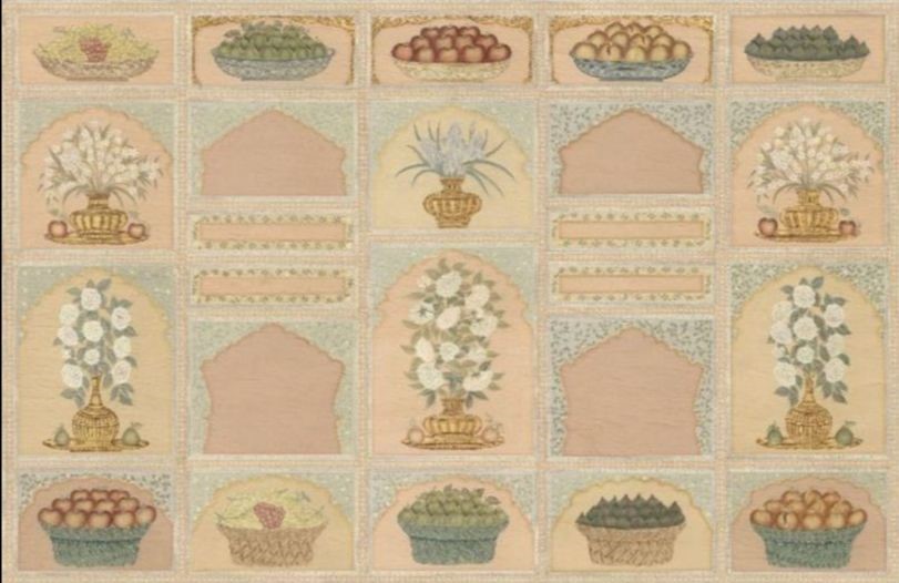 | This screen is developed from the famous Ahmet III Fruit Room at Topkapi (early 18th Cent.). We have changed the colors and simplified the graphic concept but also accentuated the Indian feeling which we believe is definitely behind the paintings. And why not an Indian painter, in a period of intense exchange between Ottoman and Moghul courts ? |