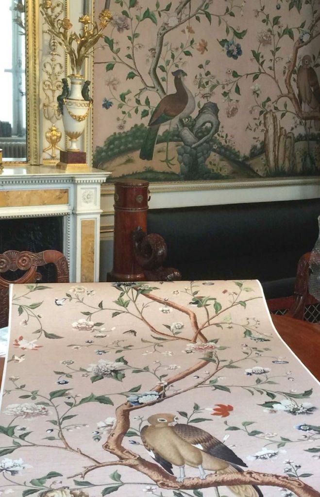 When we discovered this wonderful chinoiserie, hanging for over 200 years in an historical building close to the Royal Palace in the center of Brussels, Arnaud Jaspar, owner of Costermans Antiques, installed here since 1839, told us that many people tried to convince them to sell the original panels, and that they even had to politely refuse Jackie Kennedy 50 years ago.
