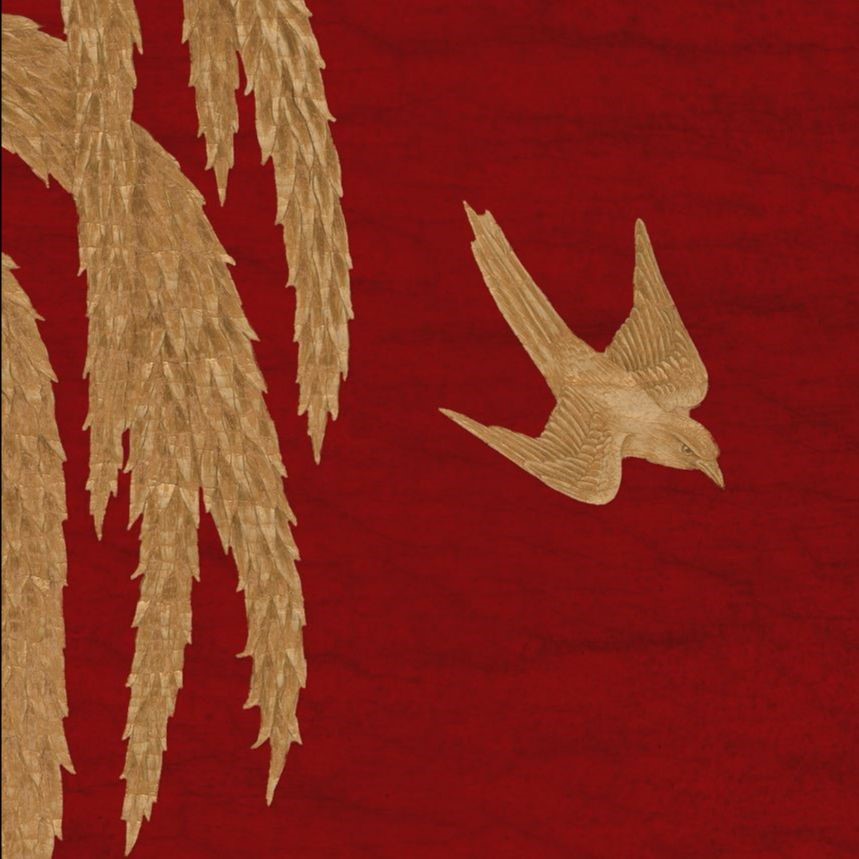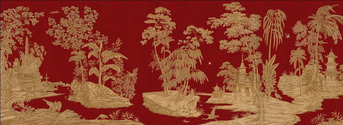 Originally framed into twelve landscape panels in crimson, yellow and gold, we have filled in the gaps and made it into a continuous scenic design available in many color options.