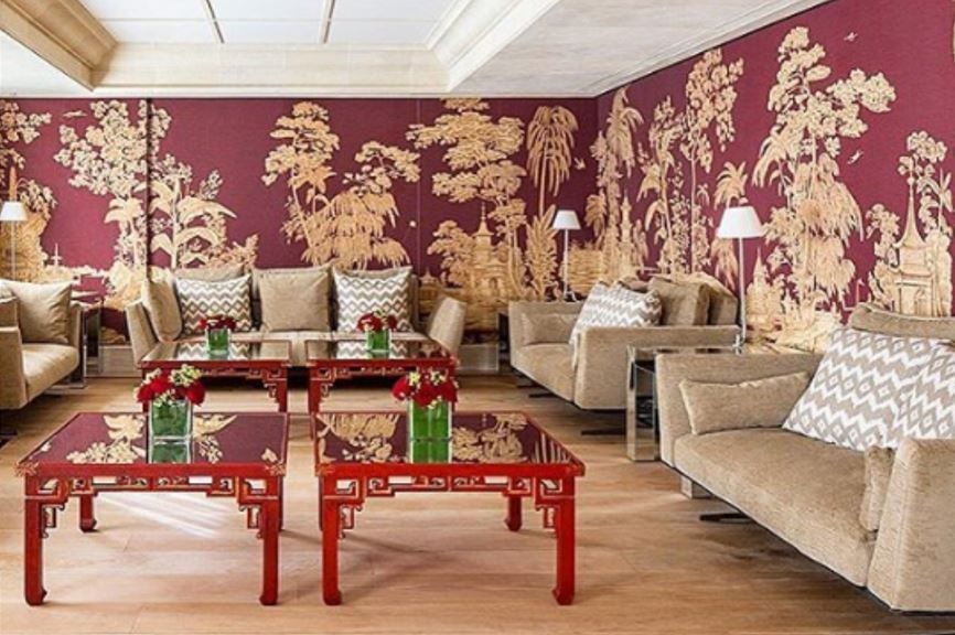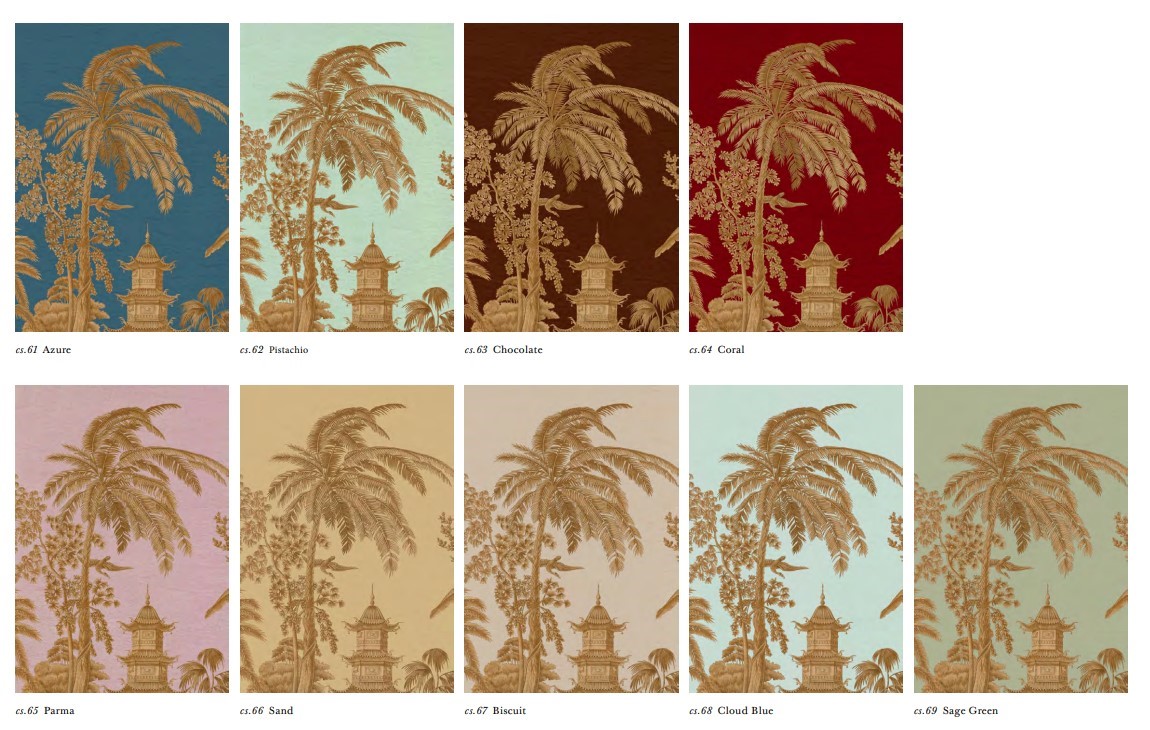 This Romantic vision of China was inspired from the paintings of Brighton Pavilion Music room executed by Henry Lambelet under the supervision of Frederick Crace. This room was created between 1818 and 1821 for the Prince Regent, later King George IV.