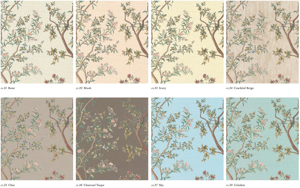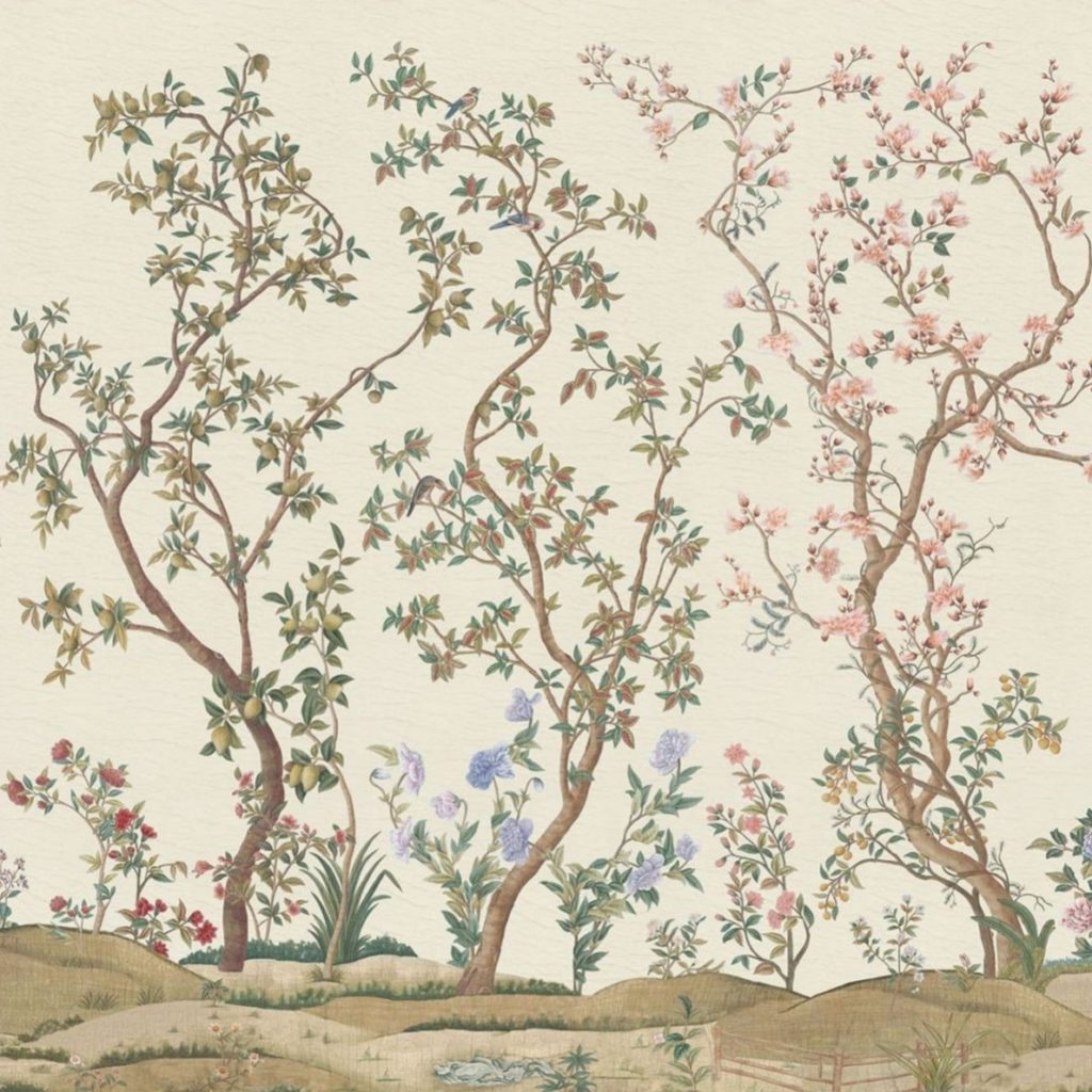 Imperial Garden was originally an East India Company traditional Chinese wallpaper. It was re-painted in our studio from stencils loaned to us by an antique dealer who had the original panels.