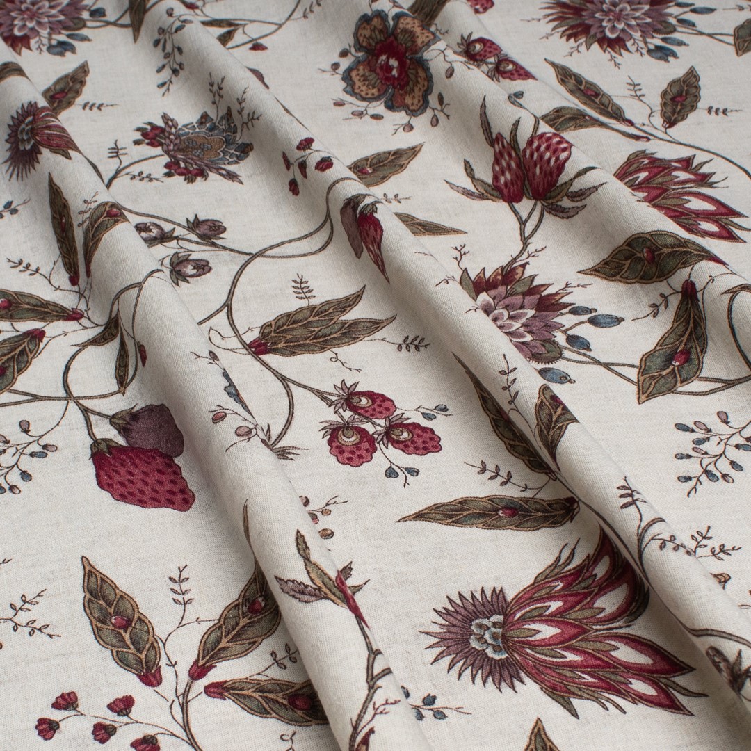 Provencal Indienne is inspired by a beautiful 18th-century Chintz from the south of France depicting interlacing flowers and fruits. It is printed on a linen and cotton ground. Also available as wallpaper under reference RW914.