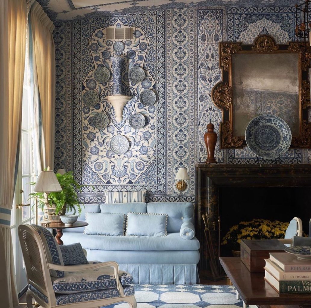 From Tory Burch’s Long Island house to Mark Sikes’s Kips Bay Dallas 2020 project, and Ramy Boutros for Em Sherif Restaurants in London (Harrods) and other cities, many interior designers have chosen Iksel’s Iznik Architectural Decors, demonstrating the endless variety of compositions and colorways these patterns offer.