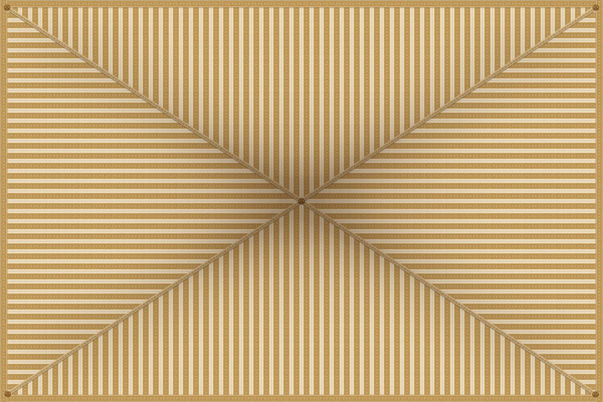 | Safavid Golden Stripe Ceiling (CE929) The full design and a corner of our Safavid Golden Stripe ceiling, assorted to the accompanying repeat design. It can also be combined with the other wallpapers and scenic decors of the “Safavid Golden Harmony” collection. |