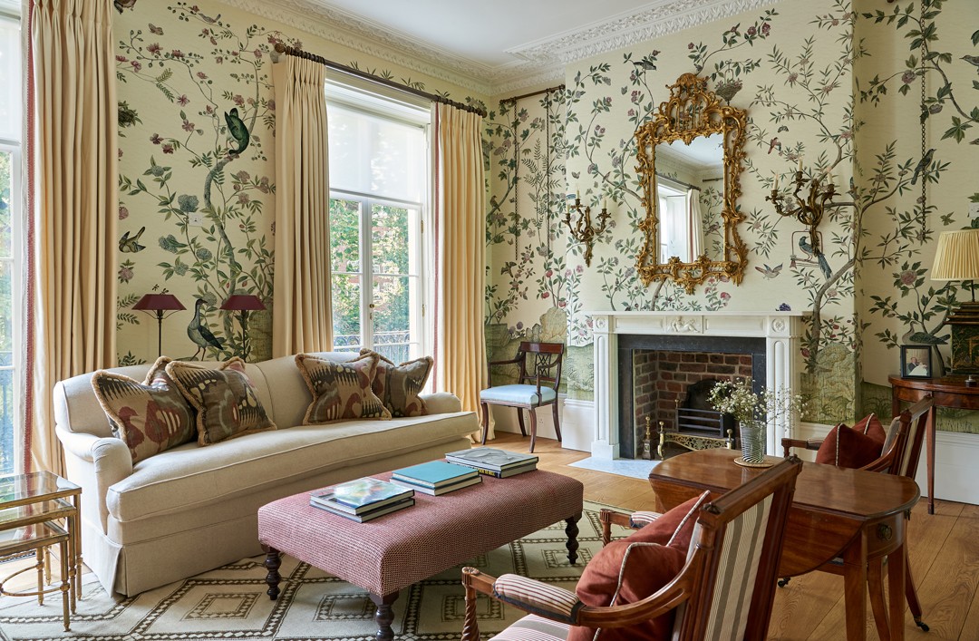 They were unlike the wallpapers available in England at that time, with their exotic subject matter, scenes of Chinese life and landscapes and flowering trees populated with birds and butterflies. The same goes for their rich hand-painted colors and fine detail. Above all, there was a playfulness and informality in the style that made them popular decorations especially for bedrooms and private apartments.