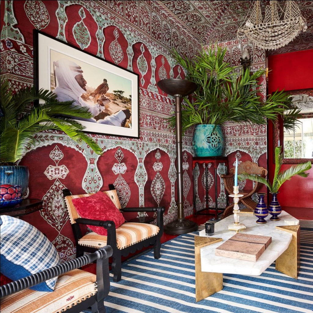 A vitrine installation at Guinevere Antiques London, a few months ago, by Belgian designer Geoffroy Van Hulle using our Ottoman Tent-Mehmet wallpaper customized for the walls and ceiling. Guinevere Antiques has been founded in 1963 by French born hat designer Genevieve Weaver.